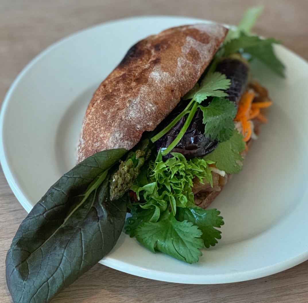 初夏野菜とエスニックシュリンプのバインミー